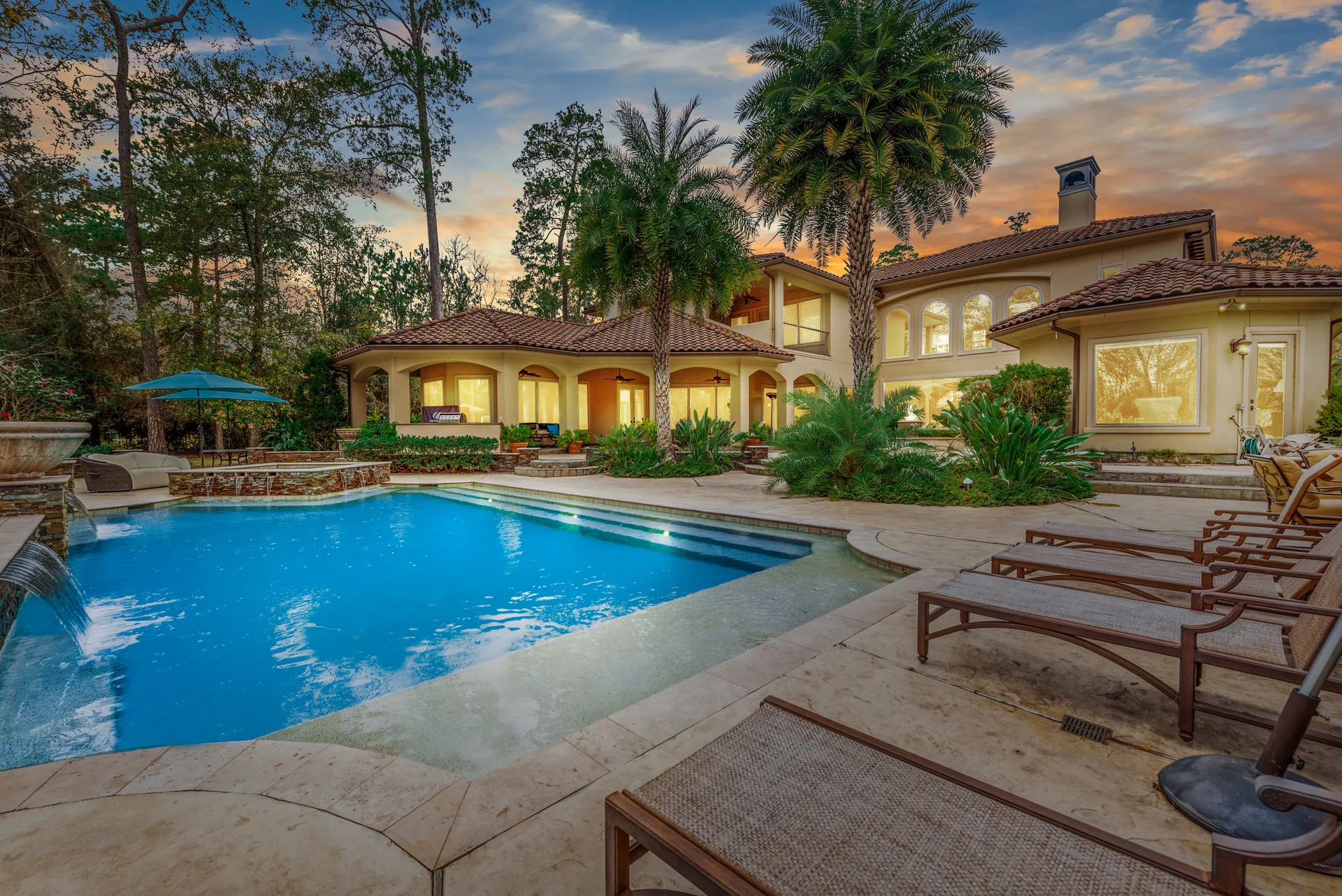 - Properties with landscape lighting or pools